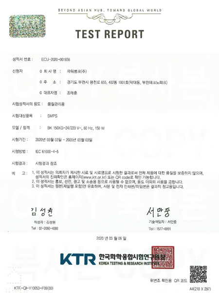 * CERTIFICATE * 낙뢰 보호 시험성적서