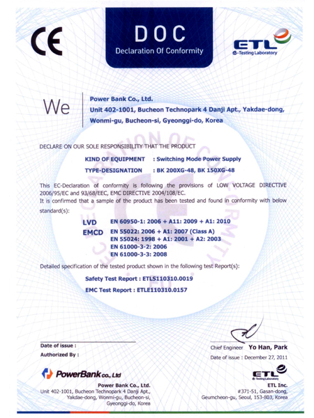 K61347-1, K61347-2-13, K62384, EN 60950-1 |