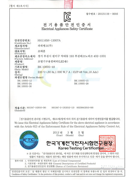 ** 본 제품은 LED용 컨버터로 KC 인증을 받은 제품이지만 다른 용도로도 사용가능합니다.