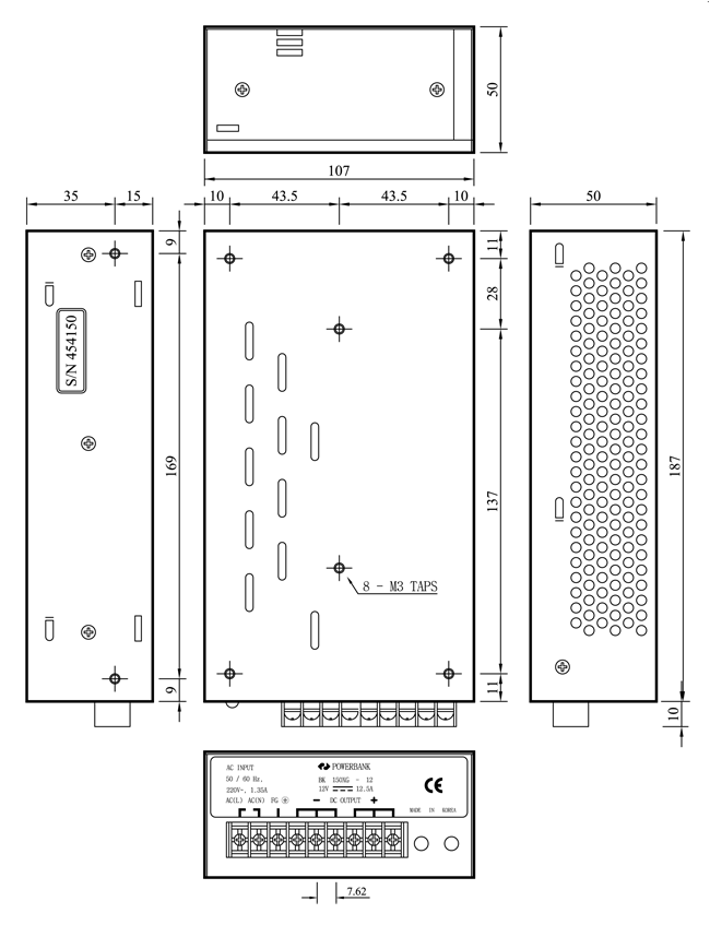 L : 187 mm W : 107 mm H : 50 mm |