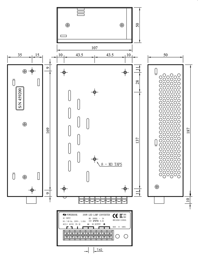 ** 입력 110Vac를 원하시면 주문시에 미리 말씀해 주셔야만 제작이 가능합니다. |